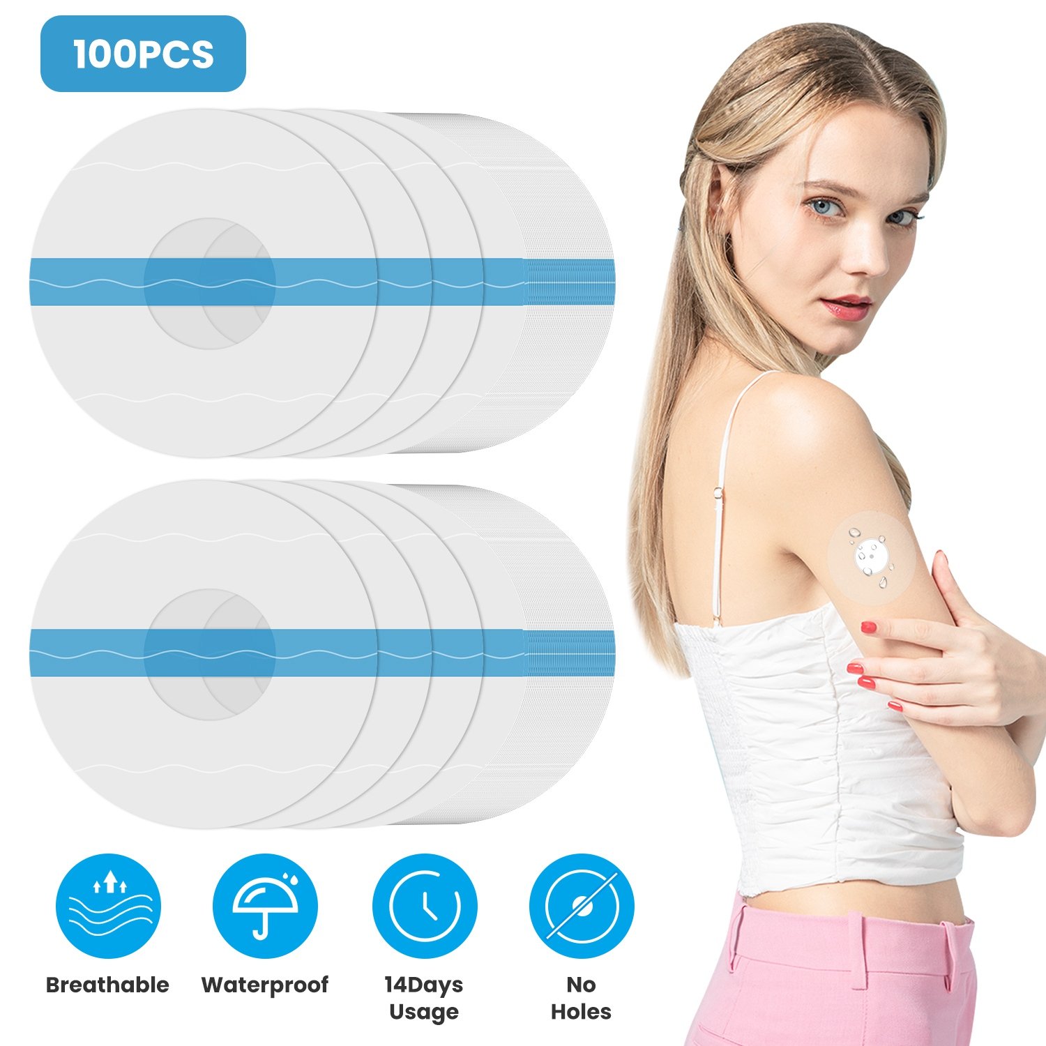 Home > 100Pcs Sensor Covers for Libre Waterproof Sweatproof Strong Stick Transparent Invisible Adhesive Patches No Glue Hole On The Center Long Lasting Tape