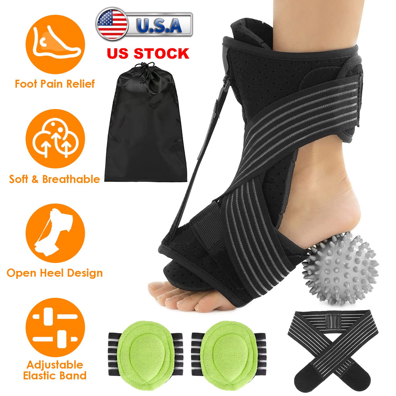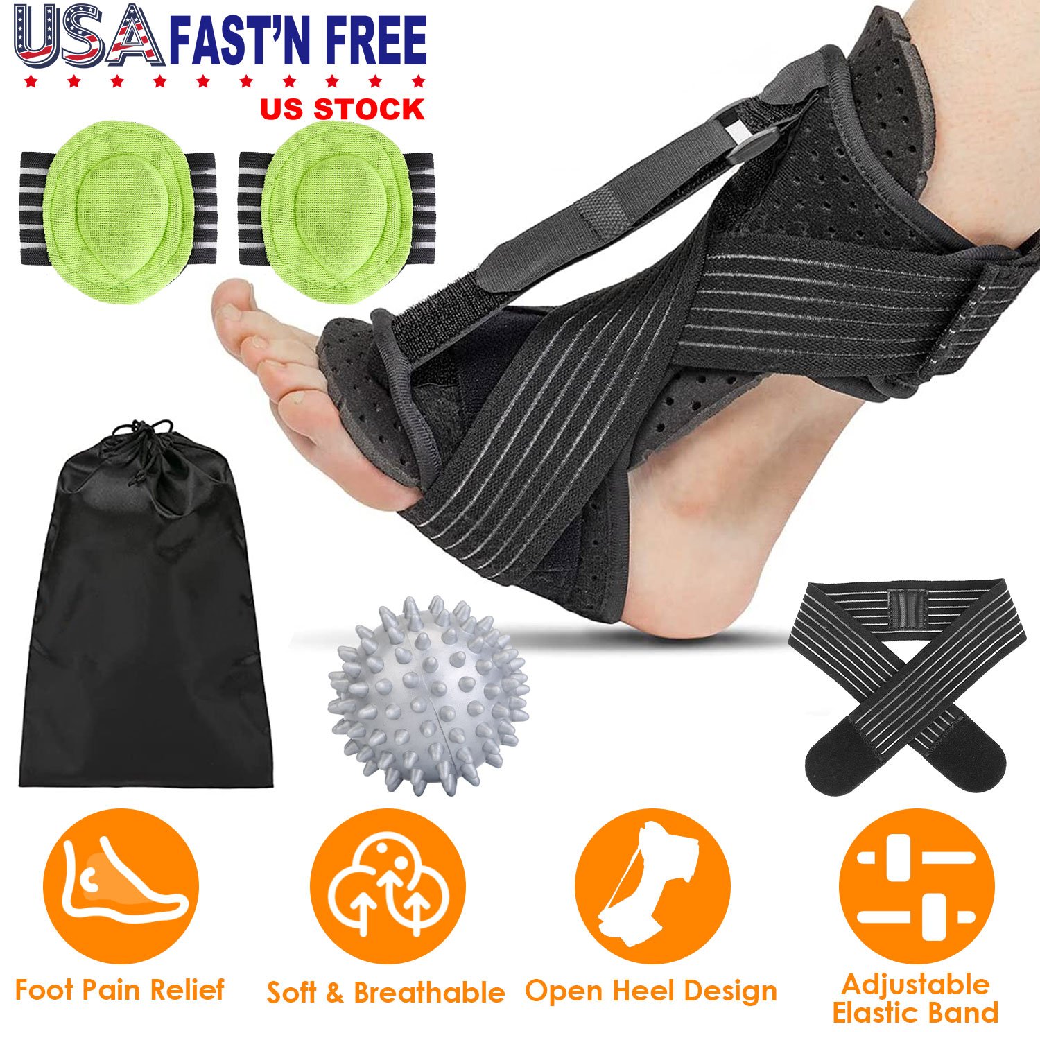 Plantar Fasciitis Night Splint Adjustable Foot Orthotic Brace Support Achilles Tendonitis Ankle Pain Relief Hard Spiky Massage Ball 2 Arch Support Ban